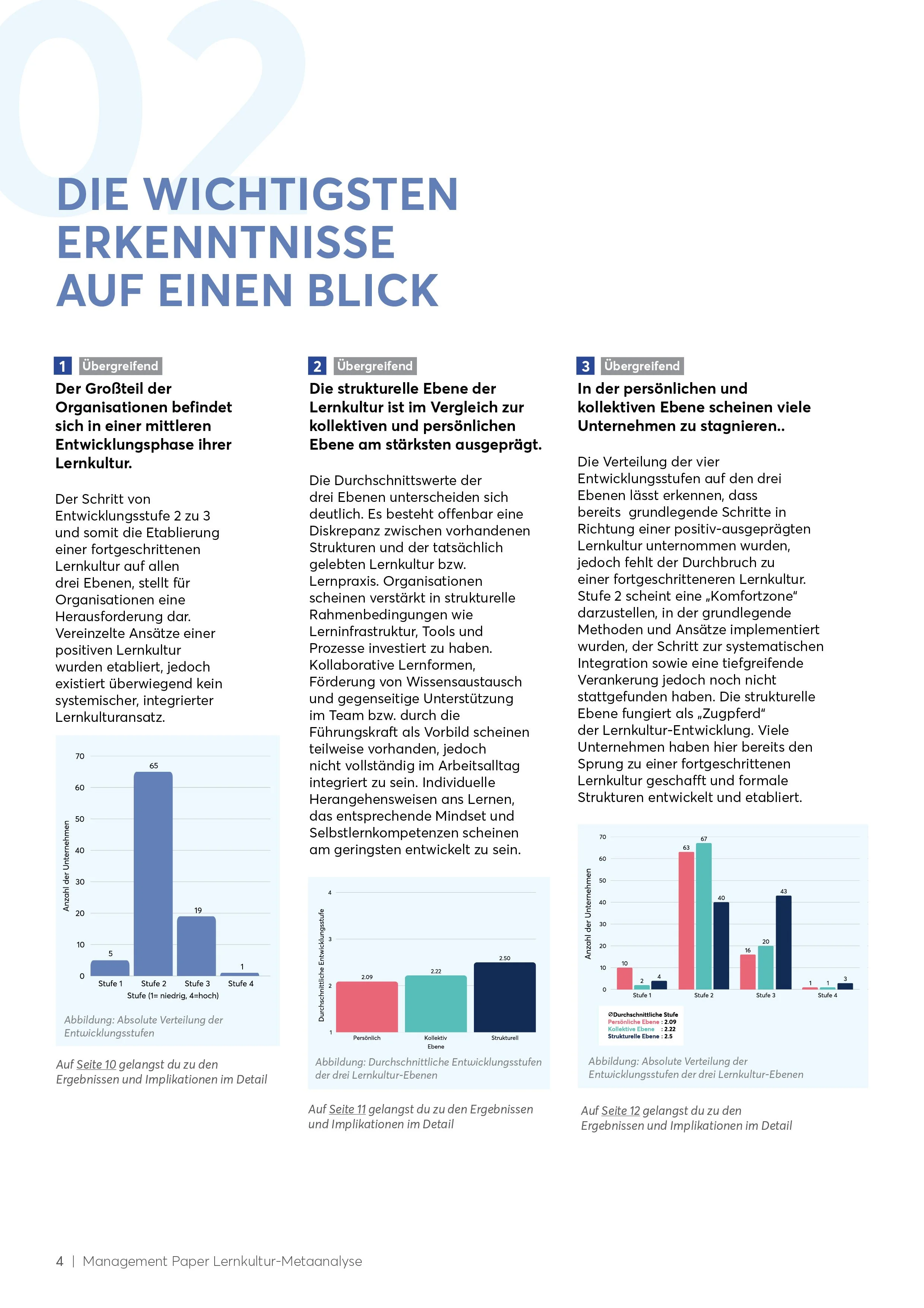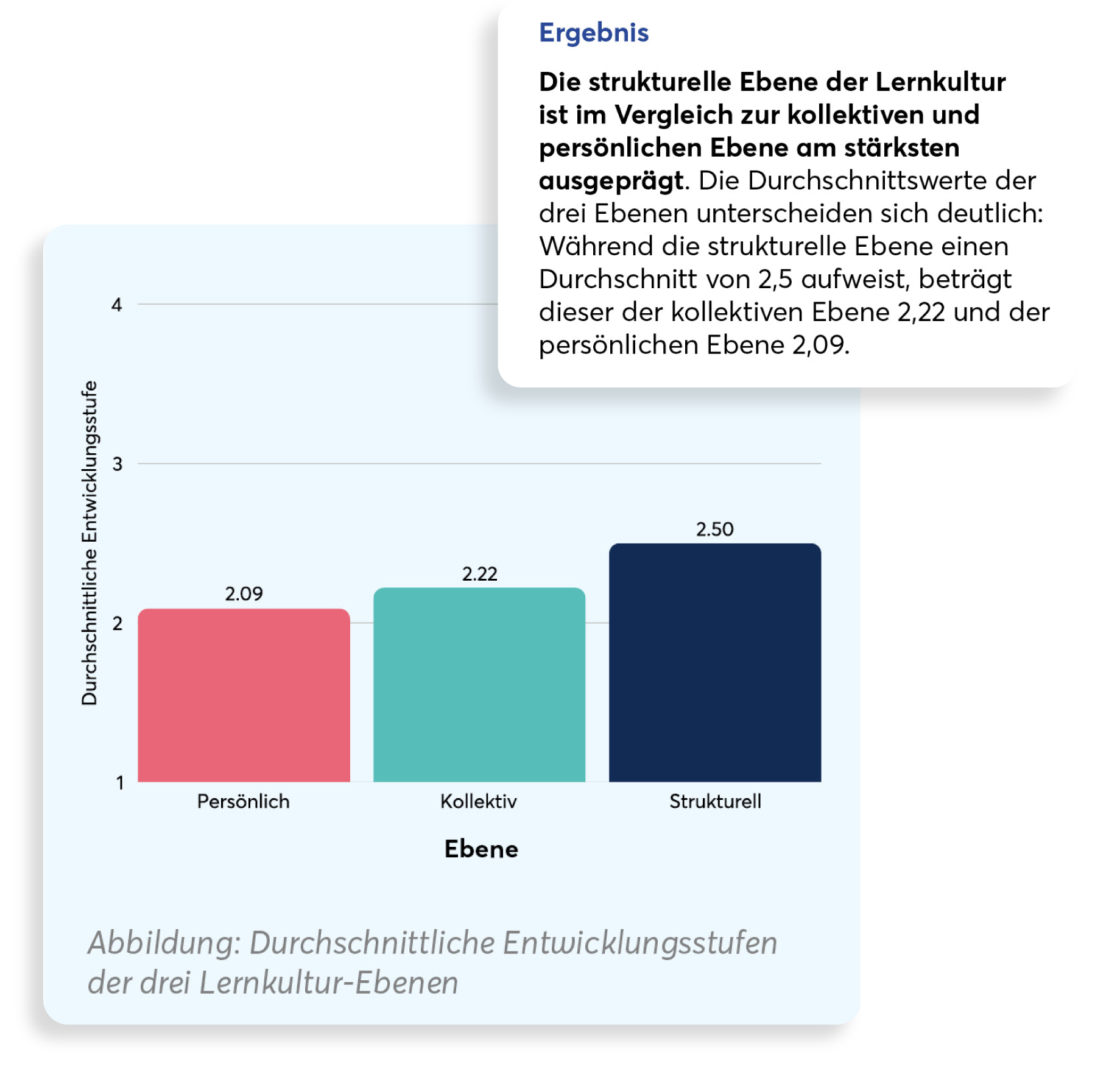 Wie die einzelnen Ebenen der Lernkultur (individuell, kollektiv, strukturell) im Vergleich abschneiden und welche Ebene am stärksten ausgeprägt ist